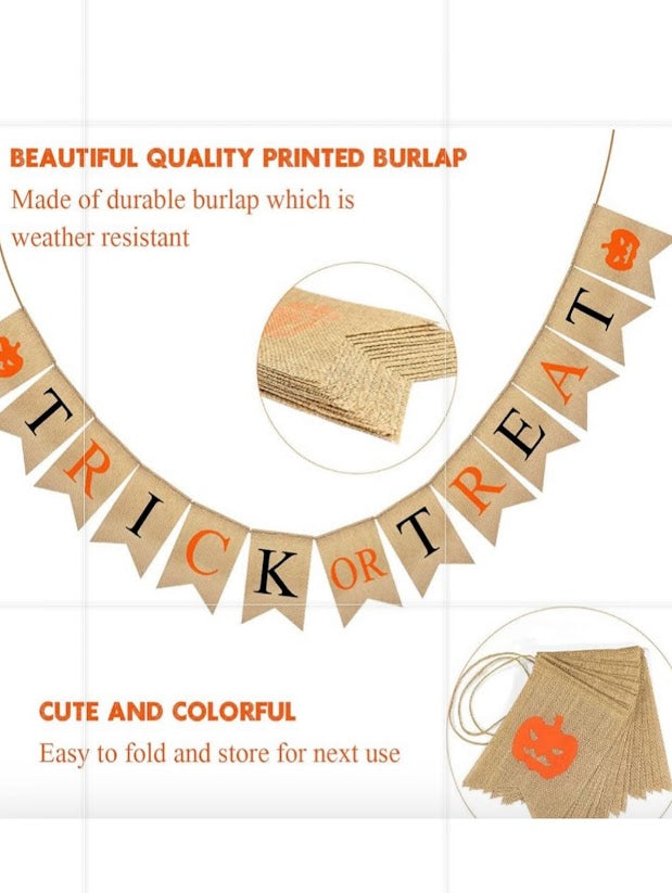 • Burlap “Trick or Treat” Banner – reusable Halloween dĂ©cor for instant festivity